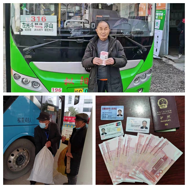 1月18日,樅陽公交分公司站場辦主任錢豐收在值班過程中,發(fā)現(xiàn)一位蹣跚的老人走進車站,他立即上前攙扶老人先坐下休息,然后遞上一杯暖心茶,幫忙拿下行李!爸x謝!非常感謝你!人老了,出門不容易啊,你讓我感受到了公交公司為民服務的溫暖!崩先肆髀冻龅恼媲樵捳Z,表達了王爺爺對樅陽公交工作人員錢豐收的謝意。