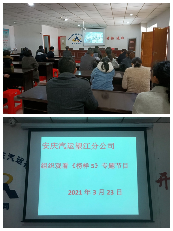 3月23日上午,望江分公司組織全體黨員和廣大職工在會(huì)議室集中觀看學(xué)習(xí)《榜樣5》專題節(jié)目。